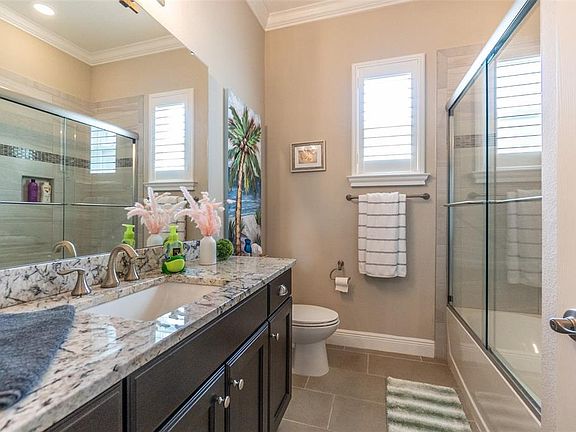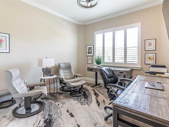 Serene lakefrontSleek granite countertopsWell-appointed guest bathCoffered tray ceilingSoaring ceilingsSpacious open foyerElegant tile flooring