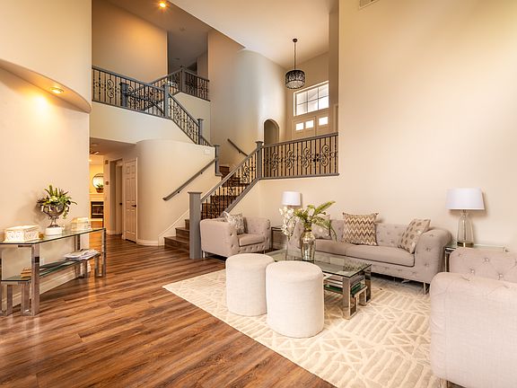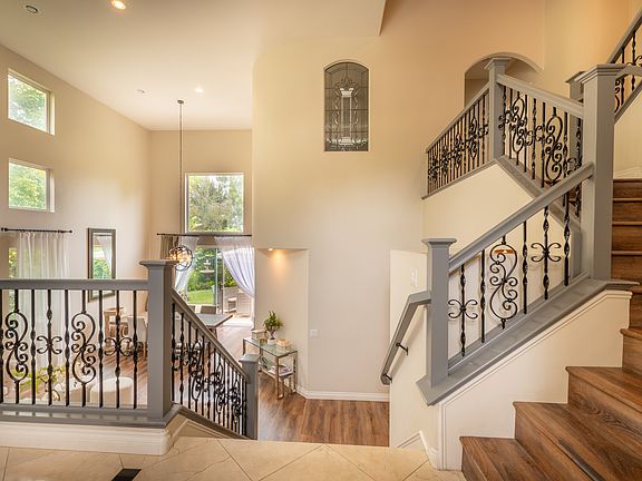 This magnificent home features a marble entry, cathedral ceiling, stained glass windows, updated flooring, paint, and modern crystal chandeliers. 5 bedrooms plus a bonus room for gym/office with 3.5 bathrooms on a sunny and breezy hillside overlooking a peaceful forested canyon reserve. Enter the neighborhood through a secure gated entry that opens to a view of sparkling city lights at night. The spacious kitchen has granite countertops and island, double ovens and is open to the large family room with a cozy fireplace. The primary suite features another fireplace, 2 walk in closets, jacuzzi tub with separate shower and an enlarged balcony with spiral staircase overlooking yard, canyon reserve and peek city views. Relax or entertain outside in the private, fenced yard with cement patio, large lawn and tranquil fountain. The backyard also has a private collection of fruit trees, including seasonal organic oranges, apples, avocados, peaches, plums, figs, mangos, pomegranates, lemons, limes, and more! Perfect location only a few steps to the large pool & spa, basketball court, clubhouse, BBQs and picnic tables. 5-7 minutes to fabulous beaches, shops and restaurants of La Jolla and Pacific Beach, parks, 5 and 52 freeways. Enjoy a resort lifestyle in a one of a kind home! Owner pays for gardener, horticulturist, and HOA amenities and services. Pets may be considered upon approval and with pet rent. Initial lease term through June 30, 2025 with option to extend, $55 application fee.