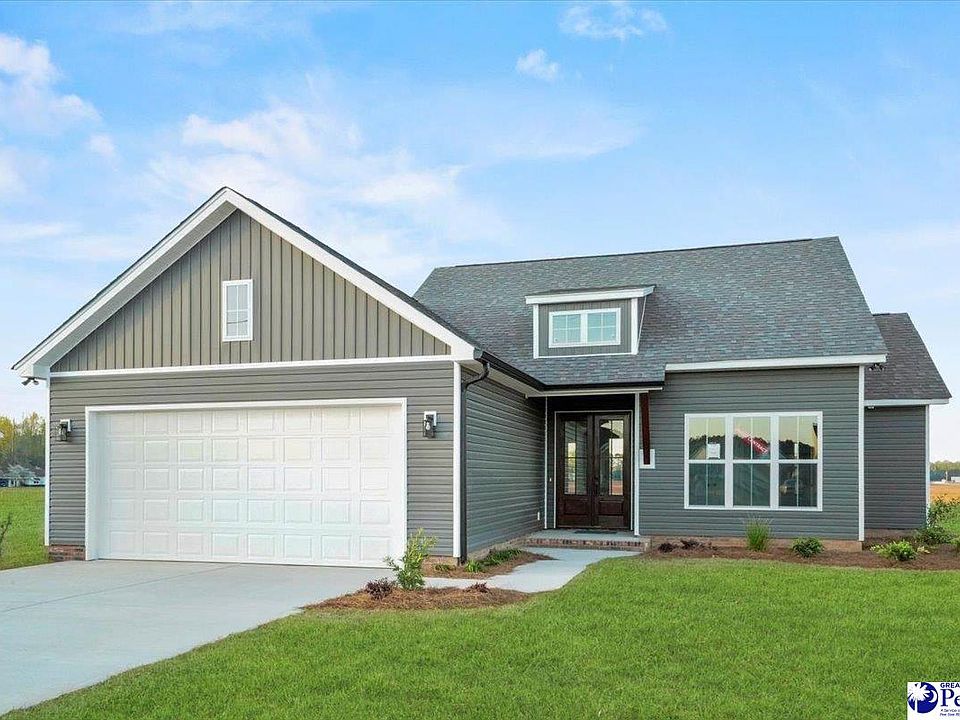 This 3 bed 2 bath new construction home by Riverbend Builder sits on nearly a half acre lot less than 10 minutes from Downtown Hartsville. Inside you'll find white quartz countertops, luxury vinyl plank flooring throughout, tile flooring in bathrooms, gas range and gas tankless water heater, and stainless steel appliances. Outside features a covered porch, two car garage, and large yard. Light and natural finishes give a modern feel in this functional home. *Floor plan shown is a rendering for approximate representation of layout of home. Measurements will not be exactly as shown.*