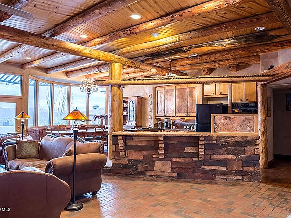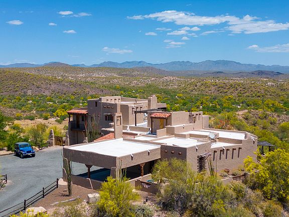 BEAUTIFUL UNIQUE HOME, HAND-BUILT LIKE A PIECE OF SCULPTURE. Feels like Santa Fe in this memorable pueblo-style home. Lrg Grt Rm w/ brick floor, wood ceiling, huge beams, copper touches in kitchen, f/p & amazing views that go on forever. 3 BRs, 2.5 baths on main level. Mstr BR has beehive f/p & Mstr Bath w/ sep jetted tub, rock shower. Private Gst Qrtrs upstairs w/ full kitchen, LR w/ f/p, BR, 3/4 bath & wonderful view deck. 3-car garage w/ 3/4 bath & laundry. Outside, patios, walkways meander around the house, w/ 2 fireplaces, block wall w/ seating, fire pit, flagstone bench, outdoor shower & deck that juts straight out into the desert w/ amazing views. 2-car crprt. Incredibly private location, yet minutes from shopping. Home exterior/trim just painted. Delight your buyers, show this home