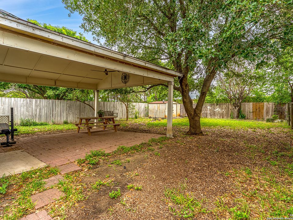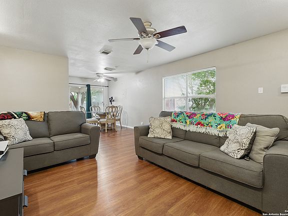 Welcome to your first home, this well maintained 2 bedroom 1 bath home that blends comfort, functionality and convenience all in one fantastic location! Minutes from hwy 1604, quick access to shopping, dining and a short drive to Lackland AFB and Seaworld. Inside you'll find an inviting open concept living and dining area that offers the perfect space for relaxing or hosting family and friends. Towards the front of the home you will find the primary bedroom which connects to the main bathroom which conveniently flows into the central hallway and secondary bedroom. Step outside to your oversized backyard, complete with a spacious covered patio perfect for grilling, gardening or simply enjoying the outdoors year round! Don't miss your opportunity to own this perfect starter home!