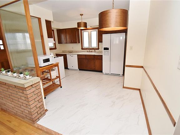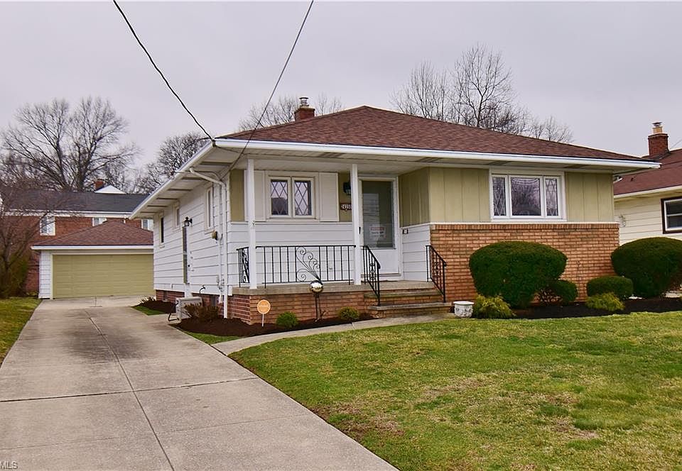 Like new ranch remodel offers move right in condition! Living rm and 3 bedrms with refinished wood floors plus brass and linen barrel shade ceiling lights. Eat-in kitchen with Calcutta non slip tile, refinished wood cabinets, copper faucet, new plumbing to sink and dishwasher, appliances, countertops, matching drum copper and brass pendant chandelier all in 2020! Other 2020 updates: 1st floor bath with Calcutta tile, vanity faucets and shower head, refinished tub, light fixture, recessed medicine cabinet and commode. Foyer with Calcutta tile and updated planter with Calico stones and plants. Side entry with Calcutta tile and brass ceiling light fixture. Rec room and large bonus room perfect for storage with new Berber carpet and baseboards. Laundry rm floor freshly painted, full bath updated with Calcutta tile, shower head, commode, bath accessories and shelving. Professionally painted interior. Electrical outlets replaced and new water shutoffs to exterior. Other updates: Vivint Security System with wall panel, 2 Emergency lanyards, glass break, CO2, camera, and window and door sensors installed 2018, garage opener, water heater, and double pane replacement windows main floor and garage. Carrier furnace and Central Air. Certain Teed roof with vents, underlayment and gutters on house and garage. Drive, front walk, garage and walkway repaved. New drains in garage and drive. Washer, dryer and extra fridge included. City of Euclid Vio free! Taxes do not include any exemptions.