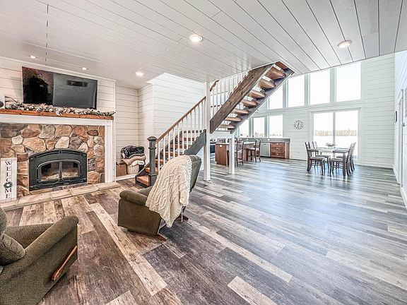This is your opportunity to put down roots in your very own custom built modern farmhouse with a contemporary rustic design on just over 120 acres! This handsome 4 bedroom 3 bath home features an open concept design, vaulted ceiling, open loft, spacious kitchen with a farmhouse sink, quartz counters, two pantry's, and a pot filler over the gas range. Additional features include a luxurious primary suite, wheelchair accessible features, main floor living, attached heated garage with floor heat, a 30x40 pole barn, and sooooo much more. Set up your showing today!
