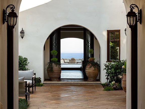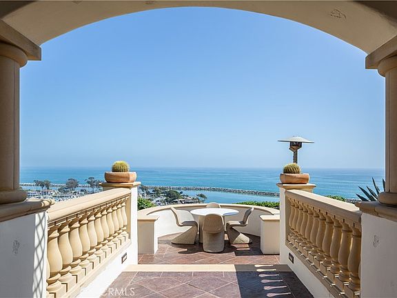 Welcome to Casa Santa Clara, an exquisite Spanish Colonial Revival estate perched atop the bluff overlooking Dana Point Harbor. Inspired by the iconic works of Wallace Neff, this custom home embodies the timeless elegance of early California architecture, seamlessly blending Old World craftsmanship with modern luxury. From the moment you step inside, sweeping panoramic ocean and harbor views captivate the senses, while the meticulous design details-hand-painted tiles, intricate wrought-iron accents, and exposed wood beams--reflect the unmistakable influence of Neff's refined aesthetic. The main house offers three beautifully appointed bedrooms, while the guest house features two additional bedrooms, creating a private retreat for visitors. These two parts of the property are connected by a stunning courtyard, where a vibrant Marlo Bartels fountain serves as the crown jewel, celebrating the rich tradition of Spanish tile artistry. Throughout the home, these intricate tiles emerge unexpectedly, adding warmth and character to the crisp, eggshell stucco exterior (originally textured by Sicilian craftsmen) all homages to Neff's architectural legacy. Designed for effortless coastal living, Casa Santa Clara spans three levels, all accessible by a private elevator. The gourmet kitchen, adorned with custom cabinetry and premium appliances, opens to an inviting dining and living area, perfect for entertaining. The primary suite is a sanctuary of its own, offering a spa-like master bathroom and a private balcony to take in the breathtaking ocean vistas. On the third level, a game room/study provides an intimate retreat with unmatched views. The guest house features a mirrored room to host a gym and a home theater in the living quarters equipped with an audio surround system. Step outside onto the expansive terraces and lushly landscaped patios, where ocean breezes and golden sunsets set the stage for al fresco dining and relaxation. With an unrivaled location just moments from Dana Point's world-class marina, pristine beaches, and the charming Lantern District, this estate offers a rare opportunity to own a piece of California's most coveted coastline. As the Dana Point Harbor Revitalization project unfolds, the future shines even brighter. Experience the pinnacle of luxury living in this Wallace Neff-inspired masterpiece. Available October 1st, 2025