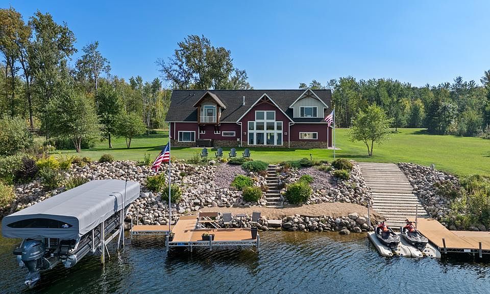This exceptional 4-bedroom, 4-bath custom-built 5000 sq. ft. Executive Home showcases impeccable craftsmanship throughout with STUNNING Lake Views from nearly every room in the house. This fabulous property features 132’ of professionally landscaped park-like grounds, rock-wrapped shoreline, an excellent sand beach, an open floor plan with soaring cathedral ceilings, a wall of lakeside windows, a gas fireplace wrapped with custom built-ins, gorgeous wide-plank Oak hardwood flooring throughout, a gourmet kitchen designed for entertaining & offering high-end stainless-steel appliances-a walk-in pantry-custom cabinetry with unique pull-out options-under-cabinet lighting-beautiful backsplash-a massive center island with a butcher block top that seats seven comfortably. The main floor primary suite is a true private sanctuary with a walk-in closet like nothing you’ve seen before-a striking chevron-patterned wood accent wall-a spa-like ensuite that offers a clawfoot soaking tub-custom tile design-a walk-in shower with three rainfall shower heads. The upper level is host to 3 large bedrooms, a cozy family room, a custom walk-in safe and a huge bonus room above the garage with endless uses. The oversized 3-stall garage is heated-insulated and nicely finished with an abundance of storage-epoxy flooring-industrial drains-large utility room and 2 furnaces. This amazing property is in the heart of Lake Country with the Cuyuna Bike Trails, fun shopping, many dining options, great golfing and so much more right out your back door…a true Dream Home!