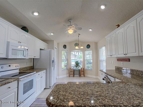 Welcome Home! This well-maintained 3-bedroom, 2-bath home offers a desirable split floor plan and a spacious enclosed patio with golf course and wildlife views—perfect for morning coffee or evening relaxation. Inside, the kitchen and main living areas feature new tile flooring, while the bedrooms are comfortably carpeted. The bright, open kitchen includes granite countertops, abundant cabinetry, and a breakfast bar, ideal for both everyday meals and entertaining. Located in the popular Viera East Golf Community, residents enjoy access to a welcoming clubhouse along with a wealth of resort-style amenities including a sparkling pool, tennis, bocce ball, pickleball, and shuffleboard. Recent updates provide peace of mind with a roof (2017), AC (2021), and water heater (2022). Enjoy the perfect combination of comfort, convenience, and active Florida living in this vibrant golf community surrounded by natural beauty and wildlife.