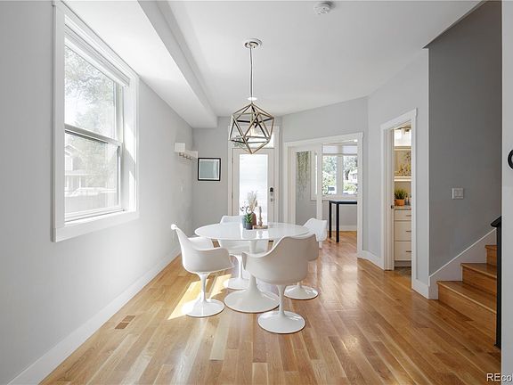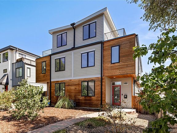 Panoramic views of Sloan's Lake! This stunning home is just a short walk to Sloan's lake and half a block walk to the amazing establishments of 25th street in Edgewater. Gourmet kitchen includes slab granite counters, stainless steel appliances and full pantry. Spacious master suite features a luxury 5 piece bathroom with a freestanding tub and Euro style frameless glass shower. Top floor features an entertainment loft, half bath, and access to the wrap around roof deck with views of Sloan’s Lake, Downtown Denver, and the Rocky Mountains. The private back yard includes a hand laid patio with gas hookups for BBQ grill, fire pit and/or hot tub. The two car garage includes EV hookup and the outdoor space was designed for low-maintenance landscaping with no HOA. Additional features include high-end Anderson windows, Nest thermostat, tankless water heater, air conditioning, custom metal railings, and white oak grade #1 hardwood floors throughout. Preferred Lender is offering a Free One Year Temporary Interest Rate Buy down! (Subject to qualification)