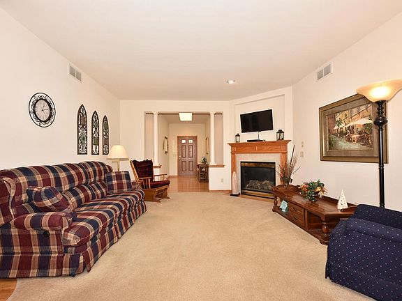 An immaculate 2 bedroom 2 bath ranch condo in Grafon's Hunter's Crossing is just what you're looking for! Large windows let in lots of natural light. Features of this meticulously maintained condo include a gas fireplace, wood floors and a first floor laundry. The primary suite is spacious with a walk in closet, trayed ceiling and a beautiful primary bath. The lower level has tall ceilings and a poured foundation and is ready to be finished off for extra living space. An attached 2 car garage and private patio tops off the list. Come fall in love!