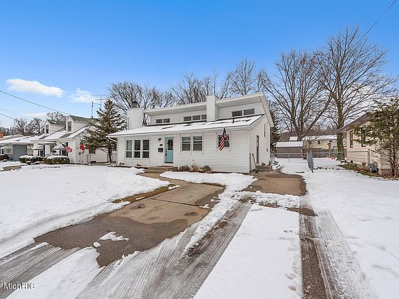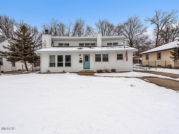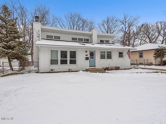Stunning 4 bedroom 2 bath home across from the beautiful Pinery Park in Wyoming! Home has an extensive list of upgrades including a new roof(w/transferrable warranty), windows, chimney, kitchen, electrical panel, plumbing, deck and more! Living room has gorgeous hardwood flooring, brick wood fireplace and tall floor to ceiling wall of windows. Big kitchen is light and bright with natural light from windows, white cabinetry, new hardware, brand new ceramic flooring, new sink, eat in kitchen area and also a granite island with extra seating. All appliances stay with the home. Upstairs you'll find the master bedroom with new sliders leading out to a deck overlooking the large fenced in yard, 2 more bedrooms, full bathroom with a double vanity and large attic area for extra storage space. In the lower level there is a 4th bedroom, a living room, half bath and a large laundry room that walks out to the back yard. Large storage shed in back corner of the yard.