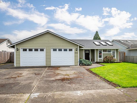 One level 3 bedroom, 2 bath home with vaulted ceilings, skylights and contemporary floor plan. Spacious living room and formal dining room with vinyl plank flooring. Open kitchen features island with seating, granite counter tops and stainless appliance package. Both bathrooms have been completely remodeled with tile back splash, granite countertops and vinyl plank flooring. Primary bedroom has walk in closet and walk in shower/tub. New roof in 2018. New HVAC System w/air purifier in 2018. Fully fenced back yard, Double car garage, RV Parking, 10 x 10 tool shed and a large covered patio. All in a desirable West Longview location.
