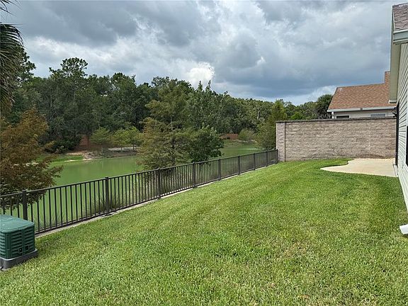 Relax in paradise with this rare WATERFRONT Onyx Model Patio Villa, offering over 1,300 sq. ft. of thoughtful design and comfort - TURN-KEY. Nestled at the end of a quiet street, this home sits on an OVERSIZED homesite with a privacy wall, providing both seclusion and room to grow. Inside, the 2-bedroom, 2-bath split floor plan places the primary suite in the rear overlooking the water, creating a private sanctuary. The suite features a walk-in tiled shower, dual vanity sinks, and a spacious walk-in closet. The heart of the home, the open kitchen, overlooks the living room and boasts Maple cabinetry, stainless steel appliances, and expansive countertops—ideal for both everyday cooking and entertaining. This Immaculately maintained, move-in ready condition home also features an OVERSIZED 2-CAR GARAGE with 4 extra feet, epoxy floor and a utility sink as well as Interior laundry with gas hook-up. Step into the unique, rare REAR LANAI retreat—perfect for barbecuing, birdwatching, and enjoying breathtaking sunsets over the water. All of this, just minutes from Magnolia Shopping Plaza, Longleaf, Loblolly, Red Fox & Grey Fox Executive Golf Courses, Riverbend Recreation Center, and the exciting new EASTPORT Town Square. Don’t miss your chance to own this rare waterfront gem—where peace, privacy, and paradise meet. Owner financing available.