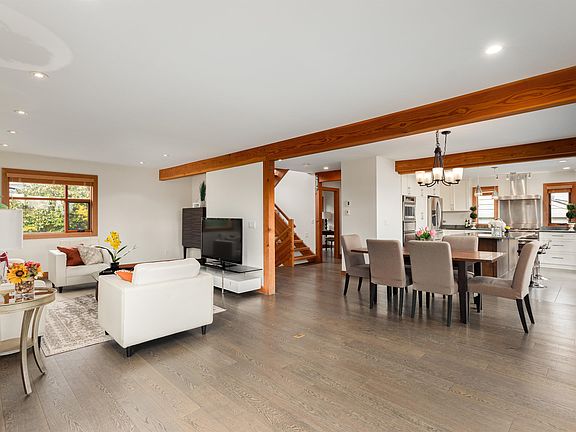 This stunning West Coast home, located in Dundarave on the quiet side of Mathers, showcases exceptional craftsmanship and unique details. The open floor plan includes a Chef's kitchen connected to an enchanting deck and garden, ideal for entertaining. The home features beautiful exposed timbers and custom millwork throughout. Enjoy spectacular views from Lions Gate Bridge to Point Grey, especially from the hot tub on your private rooftop deck. The south-facing backyard offers extensively landscaped gardens perfect for relaxation. Conveniently, it's within walking distance to IP & PJ (French Immersion) Elementary, WV High, Dundarave Village, the Rec & Senior Centres, seawall, and beach. A one-bedroom legal suite completes this remarkable property.