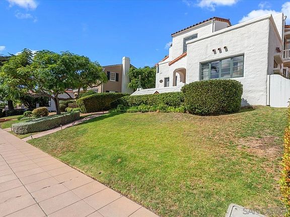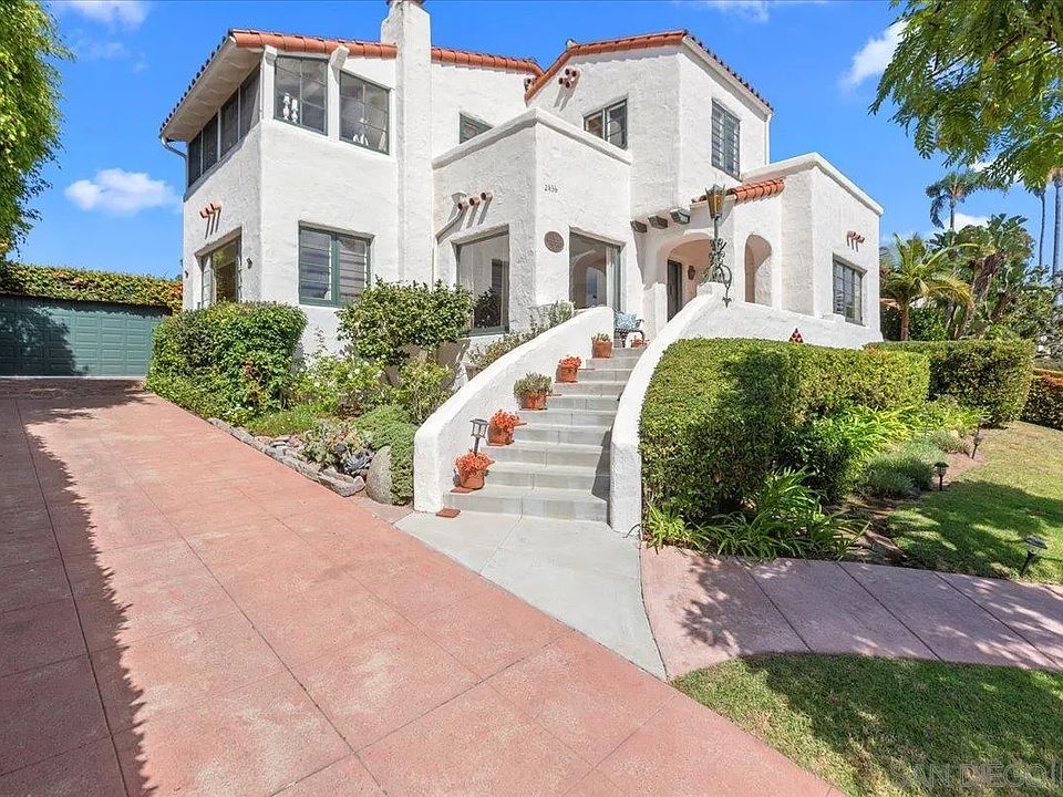 This beautiful Mills Act-designated Spanish home, known as the John and Caroline Bostick House, is situated on an elevated lot in the highly sought-after Presidio Hills enclave of Mission Hills. Built in 1927, it seamlessly blends historic character with modern comfort, featuring an expansive floor plan with 4 bedrooms, 3.5 baths, an office, and timeless architectural details throughout. Meticulously updated, the home features a chef’s kitchen with professional-grade appliances, a charming breakfast nook, and a formal dining room ideal for entertaining. Abundant natural light, two fireplaces, and elegant finishes enhance the home’s classic charm. The upstairs primary suite includes a serene sitting area, spa-inspired bath with two double sink/ vanity areas and dual walk-in closets. The front upper patios capture sweeping bay, ocean and Point Loma views. The private backyard is an entertainer’s dream, showcasing an elevated brick dining terrace surrounded by lush landscaping. A detached two-car garage and generous storage space complete this remarkable property. Benefiting from Mills Act historic designation, the home offers substantial property tax savings. Perfectly located near top-rated restaurants, boutique shops, and the best of San Diego living.