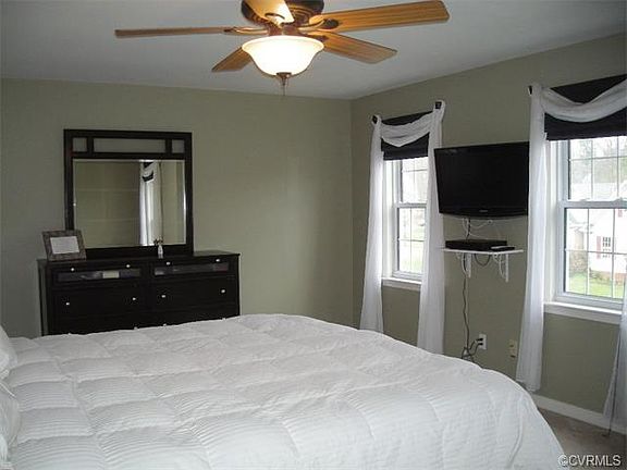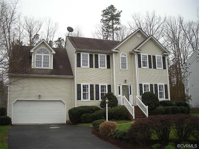 Welcome to this spacious 4 bedroom home in Brandermill. The first level has hardwood wood floors, 9'+ ceilings and nice moldings. The kitchen is eat-in with a built-in bench, has plenty of cabinet and counter space, a pantry, and island and is open to the family room. Family room has gas fireplace and has access to back deck and nicely landscaped back yard. Upstairs is master with attached master bath and access to 3rd level work out room or office area. 3 other bedrooms and laundry area complete the 2nd level. (4th bedroom could easily be used as a bonus room). Outside has low maintenance vinyl siding, a fenced in backyard, spacious deck and brick patio with pergula and the home is located on a cul-del-sac. Come see all this home has to offer.