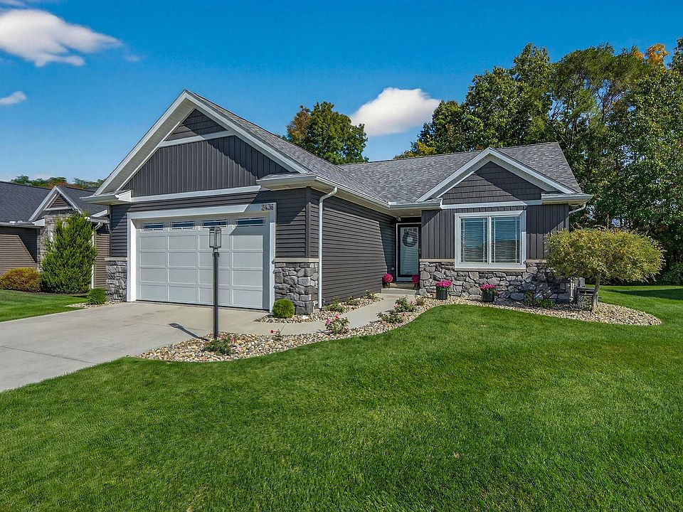 OPEN HOUSE SUNDAY, OCTOBER 26TH FROM 1-3!! Why build when you can move right into this stunning, like-new home in the highly sought-after Timberstone Subdivision! Straight out of the pages of House Beautiful, this home delivers the “wow” factor from the moment you step through the door. Warmth and character exude from every corner with an open-concept design that seamlessly blends comfort and style. The spacious living area features a beautiful fireplace and flows effortlessly into the custom kitchen with quartz countertops, a large island with breakfast bar, ample storage, generous prep space, and a charming dining area. The deluxe primary suite offers dual sinks, a walk-in tile shower, and a generous closet. The finished lower level provides additional living space, perfect for guests or family, with a third bedroom and full bath. Step outside and fall in love with the covered back porch that extends your living space and leads to a delightful step-down firepit area complete with dual porch swings — the perfect spot to relax and unwind. A true showstopper — move-in ready, beautifully designed, and ready to welcome you home!