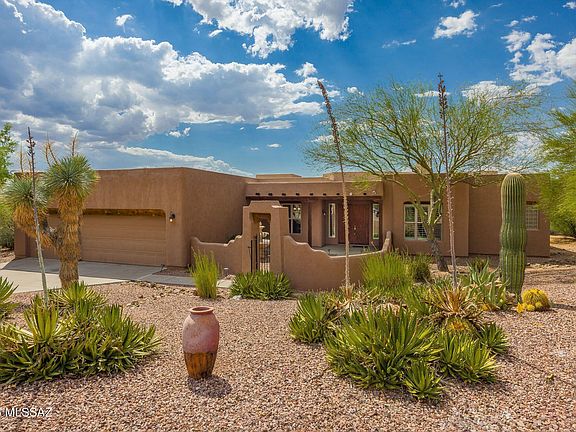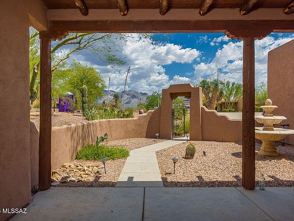 Gated front courtyardBeehive fireplaceRoom for a poolSplit bedroom planGorgeous sunsetsCatalina mountain viewsSoaring wood plank ceilings