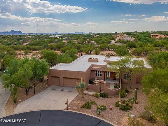 Nestled in the prestigious Chaparral Heights Community on an Acre plus premium lot in cul-de-sac. This T.J. Bednar home features his southwest flair of viga beams with soaring wood plank ceilings, pine wood interior doors & beehive fireplace. The kitchen is a chefs dream with 5 burner gas range , walk in pantry, loads of cabinets, granite counter tops, plus breakfast bar and cozy breakfast nook. Home has split bedroom plan with formal living and dining rooms plus a den, ceilings fans throughout and very spacious 3 car garage. Rear yard offers views of Tucson and Tortolita Mountains and gorgeous sunsets and plenty of room for a pool, gated front courtyard has Catalina Mountain views. Location is excellent with lots of privacy and nearby schools, shopping and restaurants.