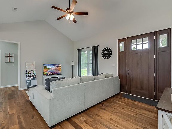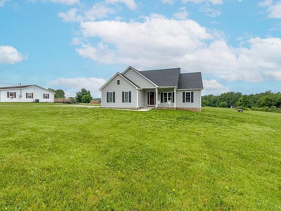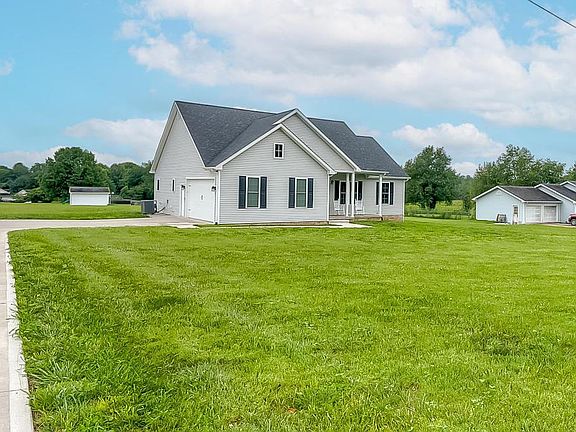 This move in ready custom built home was just constructed in 2020 and is still like new. The 3 BR 2 Bath split bedroom floorplan offers a nice open kitchen, dining and living area with vaulted ceiling featuring beautiful engineered hardwood. 9 ft ceilings throughout the rest of the home. The kitchen offers bright white cabinets with granite countertops, stainless steel appliances and spacious island. The Primary bedroom has tray ceiling and walk in closet with en suite bathroom featuring tile walk in shower with glass door and double sink vanity. Custom built hall tree and storage as you enter in from the 2 car attached garage. Very nice, level one acre lot with concrete driveway. Great location and easy access to Lancaster, Danville, Nicholasville, or Lexington.