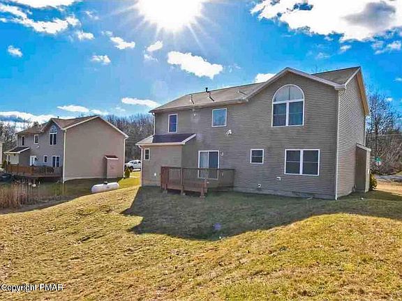 Stunning Colonial located in a PRIME LOCATION! This 4bd/2.5ba is close to major highways, popular attractions such as Mt. Airy Casino, Kalahari, & Camelback, & a wide range of amenities, shopping, & dining. The abundance of natural light flowing through the large windows in the Living Room, creates a warm atmosphere. During chilly winter nights, the STONE FIREPLACE provides a cozy warmth. The Eat-In Kitchen has SS appliances that add a modern touch, wraparound GRANITE COUNTERS, & sliders leading to the deck the perfect setup for entertaining guests. 2nd floor has 4 SPACIOUS bds, including the Primary w/ a WIC, cath ceilings, & ensuite w/ JETTED TUB for relaxation I car garage plus parking in driveway