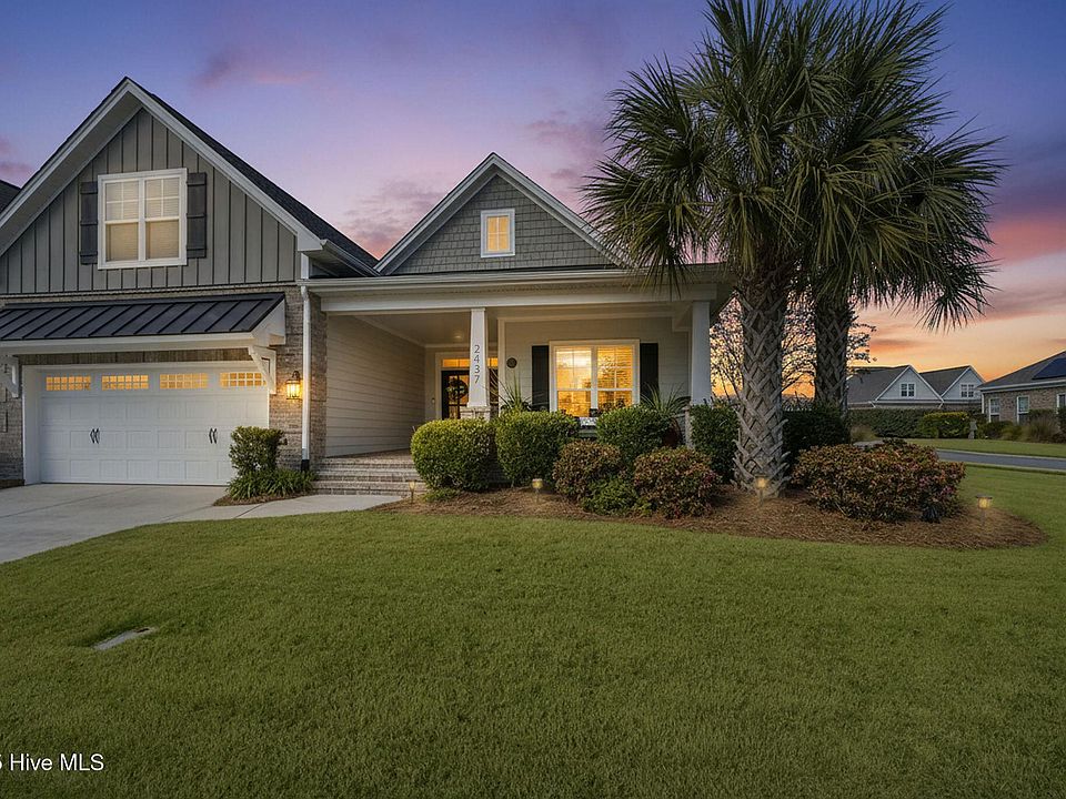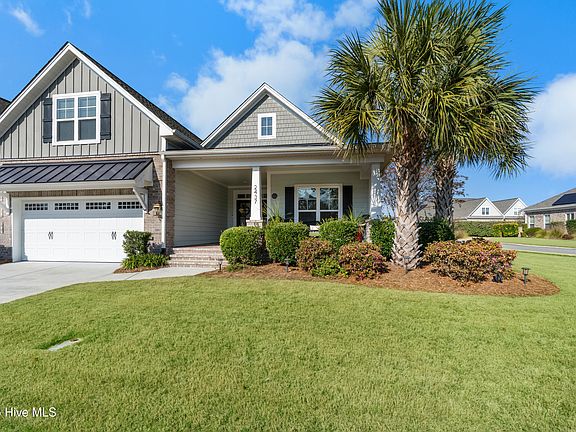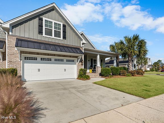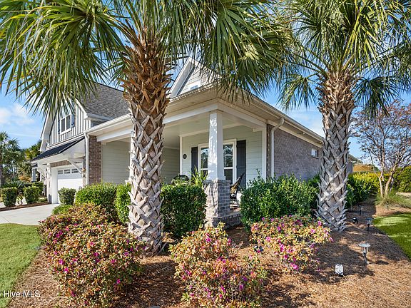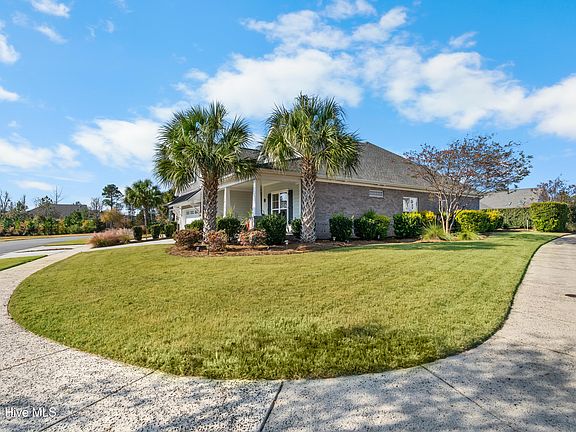 Discover easy, low-maintenance living in this like-new beauty, perfectly situated on a premier corner lot with lush, mature landscaping for privacy and year-round appeal. A timeless red brick front porch creates a warm welcome and a peaceful spot to enjoy nature's views. Step through the double front doors into an inviting open layout featuring lighted tray-ceilings, a coffered living room ceiling, and transom windows that fill the home with natural light. A bright study with French doors offers ideal flexibility for an office, den, or hobby room. The kitchen boasts abundant cabinetry, a large island perfect for gatherings, and a brand new refrigerator. Telescoping sliders off the living room extend your living space into the fully enclosed (heated and cooled!) sunroom with custom shades, overlooking a stamped concrete patio—perfect for grilling and relaxing in the private backyard. The primary suite is a generous retreat with direct sunroom access, a cozy reading nook, and two walk-in closets. Its ensuite bath features a double vanity, linen closet, and a walk-in shower with barn-door sliding glass. Guests enjoy exceptional comfort with a first-floor guest bedroom and bathroom, made even more private by a pocket door that closes off this entire area, or the spacious bonus room with its own full bath. Storage is plentiful with a walk-in attic and an epoxy-floor 2-car garage. Located in the gated, golf-cart-friendly community of Compass Pointe, offering resort-style amenities: the Grand Lanai clubhouse, indoor and outdoor pools, lazy river, fitness center, lighted tennis and pickleball courts, walking/biking trails, kayak launch, endless clubs and activities, and more. Home to the stunning 18-hole private Compass Pointe Golf Club and additional amenities available to members! Don't miss your chance to live in one of the area's most sought-after communities—just 12 minutes from the charm of historic downtown Wilmington. Make this your next address!