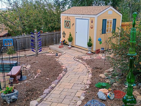 Nestled in the highly coveted Skyway neighborhood and within the award-winning Cheyenne Mountain D-12 School District, this beautifully updated ranch-style home offers the perfect blend of elegance, comfort, and location. Featuring 5 bedrooms and 4 baths, the home showcases sweeping city views and inviting living spaces designed for both everyday living and effortless entertaining. The main level welcomes you with a formal living room anchored by a cozy fireplace, flowing into a bright kitchen with granite counters, an island, white cabinetry, pantry, and walkout access to a spacious deck overlooking a serene landscaped backyard framed by mature trees. The oversized primary suite offers a true retreat with a sitting area, dressing space, walk-in closet, and spa-like bath with dual vanities, a jetted tub, and an oversized shower. Another bedroom and full bath are also on the main level. The finished walkout basement expands your lifestyle options with a spacious family room highlighted by a second fireplace, an ensuite bedroom with its own private bath, two additional bedrooms, another full bath, office/flex space, laundry with sink, cedar closet, and ample storage. Multiple patios and outdoor gathering spaces invite relaxation or entertaining year-round, while an oversized 2-car garage with workshop adds everyday convenience. All just minutes from Bear Creek Park with miles of trails, dog park, and recreation courts.