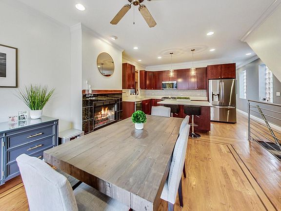 - Features: Kitchen (Eating Area-Breakfast Bar, Island, Custom Cabinetry, Updated Kitchen), Flooring (Hardwood), Window Treatments (Blinds)