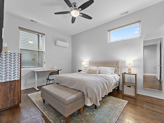 Welcome to this exceptional fully-furnished newer-construction home offering over 3,000 square feet of expertly designed living space. This modern residence features 4 spacious bedrooms, 3.5 bathrooms, and an attached 2-car garage, seamlessly blending luxury, comfort, and functionality. The sun-drenched main level boasts an open-concept layout with a chef-inspired kitchen, complete with premium integrated appliances, custom cabinetry, and an expansive quartz island, a true culinary haven. Upstairs, you'll find the laundry area and a beautifully appointed bedroom, along with a luxurious primary suite that includes a private balcony, a generous walk-in closet, and a spa-like ensuite bath. The rooftop level features a sprawling private deck with panoramic views, perfect for entertaining or relaxing. The lower level adds versatility with two additional bedrooms and a second living area, ideal for guests, a home office, or media space. Ideally situated just two short blocks from the 290 Expressway and the Blue Line L-train, offering quick 15-minute access to downtown and convenient connectivity to destinations across the city. Located just minutes from downtown, the UIC Medical District, and the vibrant West Loop, this home offers the pinnacle of modern urban living. With superior craftsmanship and high-end finishes throughout, this is a rare opportunity to rent a truly remarkable property.