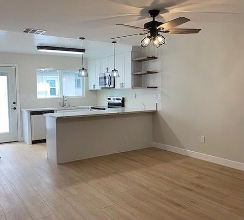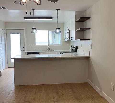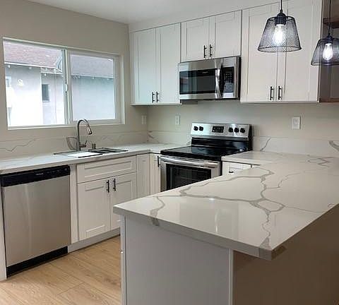 Newly built ADU in a quiet 5 unit building with outside enclosed patio space. Open floor plan with large kitchen, Shaker Cabinets, lots of storage, quartz counters, 4 seat breakfast bar, pantry, vinyl floors throughout. Separate eating area can be an office area. Main bedroom fits king bed and has walk-in closet. Centrally located near many eateries and stores. Pets welcome. Owner pays for gas. Tenant pays electric and trash. No smoking building. Street or alley parking. Lease period 9 months.