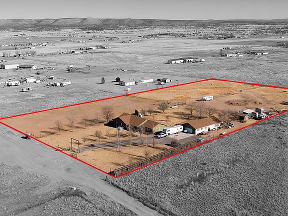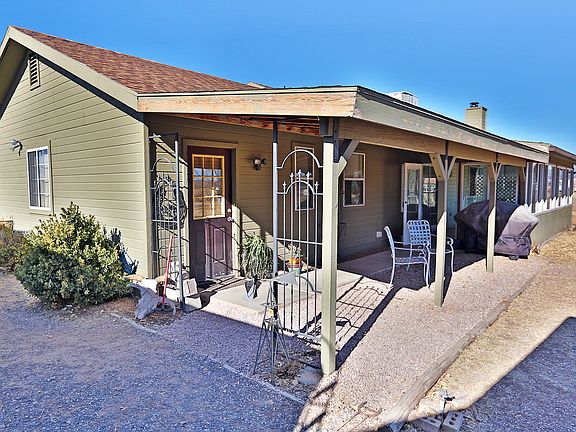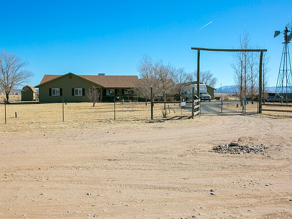 Lovely, peaceful, setting ranch style home with room for horses, and your other fur-babies. Home features an in-law suite with its own outside entrance(608 sq.ft). Total 5 bedrooms and 3 baths with open floor plan. Upgraded features new interior paint and some new laminate wood flooring. 1869 sqft. home with unheated open AZ room, wood burning stove in living room (very efficient), dual water heaters, knotty pine kitchen cabinetry, breakfast bar, and so much more. A windmill could be in working order. Large 4 car garage (28x56) with 110/220 hook ups, 2 stall horse covers, large round pen, tack room (12x12), 14X8 garden shed for more storage. Also has a room to store your home canned items. Fenced and crossed fenced.2 leased propane tanks 1 full for emergency planning. Arizona sunsets