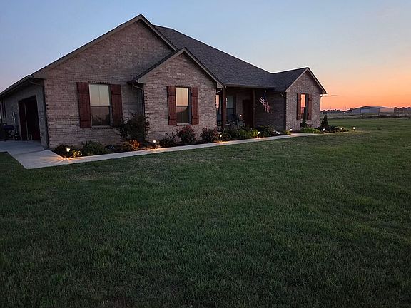 Beautiful home on 5.9 acres M.O.L. completely surrounded by metal fencing perfect for animals. Home has safe room in the master, spray foam insulation. 40x40 spray foamed metal barn on the edge of town. Well water, dual heat, propane or electric.