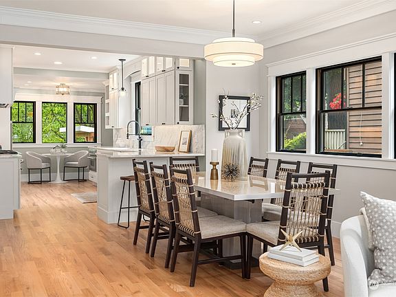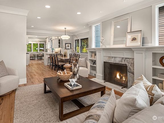 This beautiful 1914 Craftsman, in a prime location on Queen Anne has been extensively renovated retaining its charm for today’s modern lifestyle. Main floor: Carefully updated with crown moldings & trim, new hardwood floors, sun-drenched, cozy living room w/ marble fireplace, leaded glass & new double pane windows, flows seamlessly into dining room & chef’s kitchen. New Thermador appliances. Abundant storage & counter space. 4 Bedrooms + Office, 3.5 baths. Primary ensuite with vaulted ceilings, skylight, huge private deck off master. Recreation room, bar with wine refrigerator, & dishwasher. 2 laundry stations. New plumbing, electrical, HVAC, air-conditioning, roof. A fenced yard with Pergola.