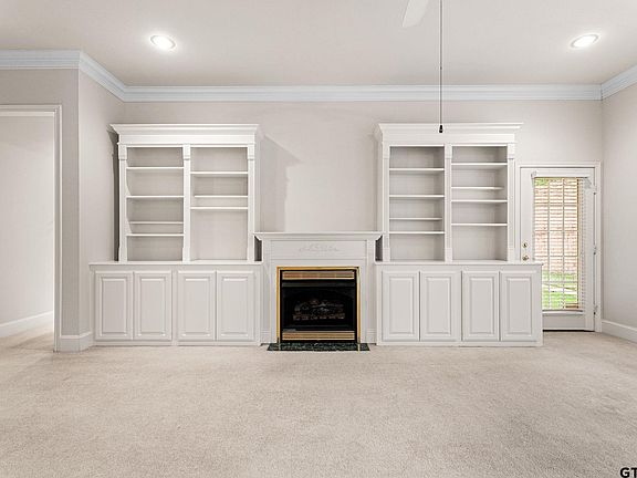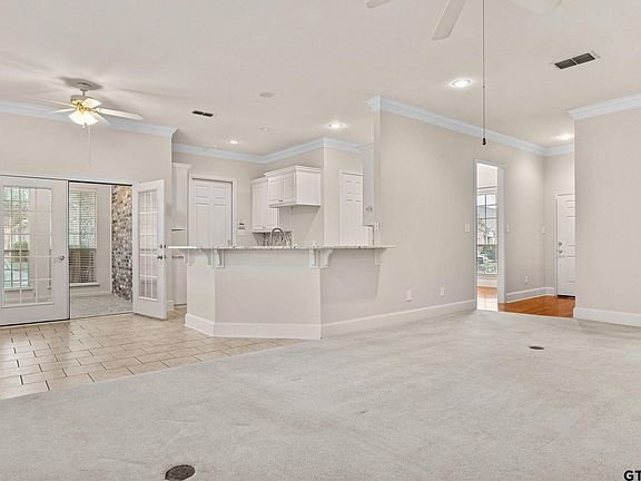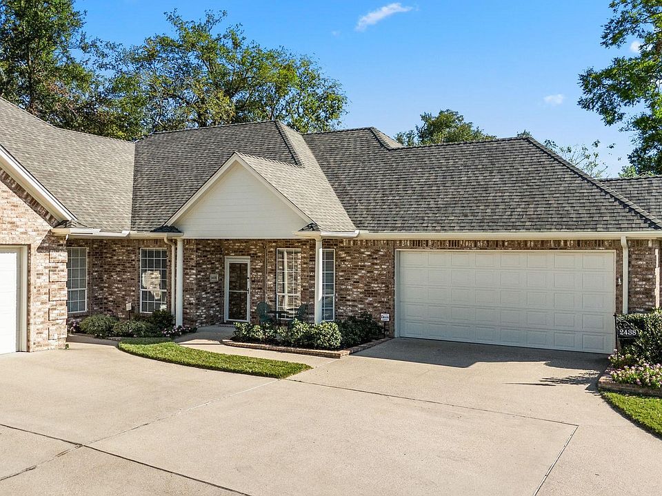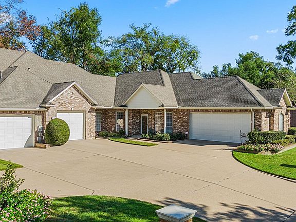 Introducing a charming 2-bedroom, 2-bathroom townhome nestled in the prestigious gated community of The Homestead—one of Tyler's most sought-after age-restricted neighborhoods for 55+. This beautifully maintained home is surrounded by a delightful custom brick wall, offering both privacy and a secure environment. The neighborhood walking trail is perfect for leisurely strolls and socializing with neighbors. Get to know your neighbors at the community pool and clubhouse! Step inside to discover a spacious layout that includes a large, comfortable kitchen with a walk-in pantry, a cozy breakfast nook, and an elegant formal dining area. Enjoy peace of mind with ADA handrails in the hall and bathrooms. The generous office space can easily be transformed into a third bedroom to suit your needs. The inviting living room boasts exquisite custom trim work and crown molding, complemented by a warm gas log fireplace, ideal for gatherings or quiet evenings at home. Just off the kitchen, you'll find a charming room perfect for a den or craft room, providing a serene space to unwind or unleash your creativity. The expansive main suite features a walk-in closet, double sinks, and a separate shower, ensuring comfort and convenience. This townhome features a 2 car garage with automatic door openers, and a stairway to the attic for added convenience. The roof was newly replaced in September 17, 2024. Recently upgraded granite countertops in kitchen. The HOA maintains the lawns and flower beds, and the sprinkler system is automatic. Experience the lifestyle of The Homestead community, where friendly neighbors and wonderful amenities await!