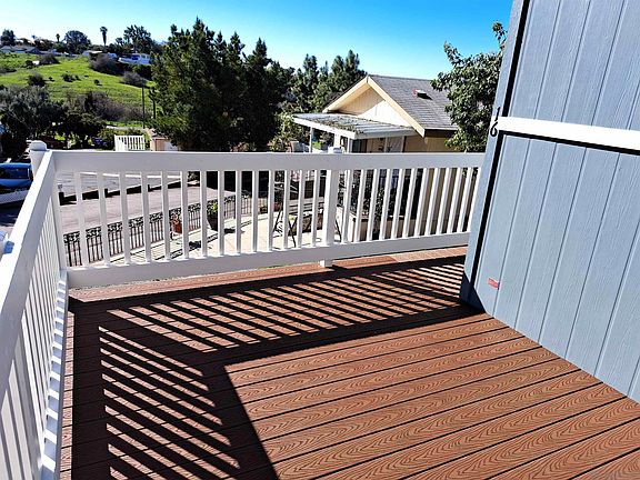 Brand new Silvercrest manufactured home. This home is located in just about the most affordable COOP mobile home community in all of San Diego County with a very low HOA fee of only $235.00 monthly. This is a 55+ age restricted park. Home is located on a hill with large lot overlooking wonderful views and with a large deck constructed of trex decking and solid wood hand rails.