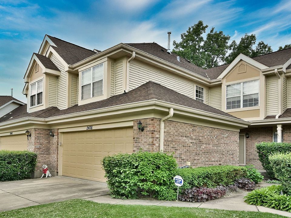Beautiful 2 bedroom, 2.5 bath, two-story townhome in Prescott Square subdivision. Featuring vaulted ceilings with a bright and sunny loft overlooking the living room with a fireplace. Updated eat-in kitchen with a separate dining room that has sliding doors to a private patio with wooded views. First-floor laundry with washer and dryer. Large master suite has a soaker tub, a separate shower, a double sink and a walk-in closet. Second bedroom has its own private bathroom. Finished Basement with a wet bar for entertaining. New wifi enabled garage door. Close to shopping and expressways. Just move right in. This home is a must-see!