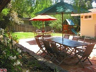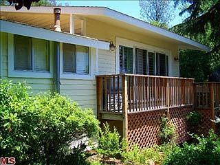 Charming Country Cottage on a quiet Topanga cul de sac. Walk to state park and hiking trails. Recently redone w/ oversized master suite w/ 12 ft. ceilings, walk in closets and a luxurious spa bath. Walls of glass sliders lead to expansive wrap around entertainment decks and canyon views. Central Air and heat. Large fenced yard with swing set, brick patio and grassy lawn. 10 minutes to the beach. (Internet 5604676)