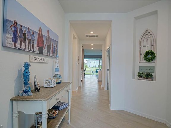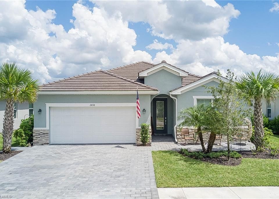 Like-New Marsala Model with Water Views in Orange Blossom Ranch! Welcome to 2438 Orchard Street in Naples, FL — a pristine Marsala model offering 3 spacious bedrooms, a versatile den, 3 full baths, and over 2,200 sq ft of thoughtfully designed living space — all set on a premium lot with tranquil water views. From the moment you step inside, this home impresses with like-new condition, sleek tile flooring throughout (no carpet!), and a flowing, open layout perfect for both everyday living and entertaining. The heart of the home boasts a chef’s kitchen with extensive cabinet space, stainless steel appliances, granite countertops, and a large island ideal for gatherings and prep work alike. Whether you're cooking for two or hosting a full house, this space was designed to keep up. The split-bedroom layout provides privacy, while the den offers the perfect flex space — home office, guest room, or playroom. The primary suite features peaceful water views, a spacious walk-in closet, and an ensuite bath with dual sinks and walk-in shower. Step out to your covered lanai and soak in the serene lake views — a perfect spot for morning coffee or evening wine. The yard offers space to add a pool if desired, or simply enjoy the quiet, low-maintenance outdoor setting as-is. Located in the gated, resort-style Orange Blossom Ranch, this family-friendly community is loaded with amenities: Two resort-style pools, lap pool, hot tubs, tennis, basketball, volleyball & pickleball courts, a fitness center, clubhouse, playgrounds & more! Just outside the gates, enjoy the brand new Publix shopping center — golf cart accessible for the ultimate convenience! You’re also minutes from top-rated schools and Big Corkscrew Island Regional Park — Collier County’s largest and newest park, featuring sports fields, splash pads, walking trails, and more.