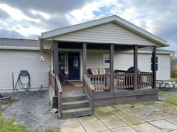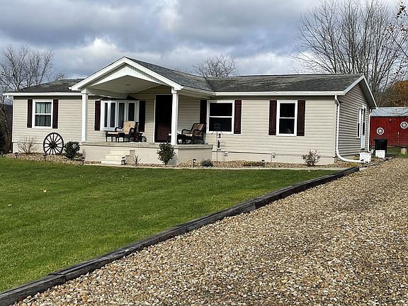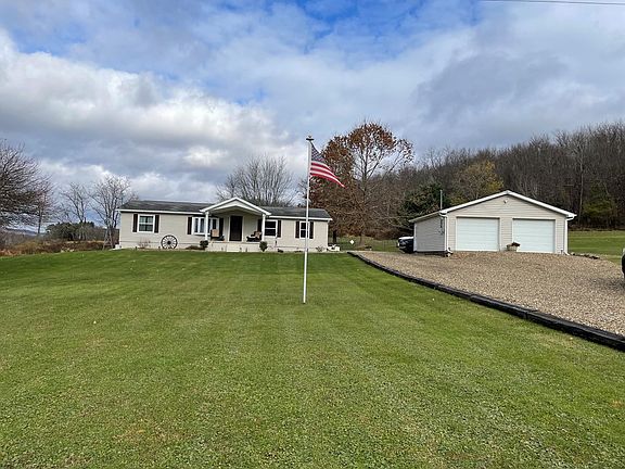 Looking for a one floor home in the country? This may be the place for you. This well maintained home is located walking distance to Dollar General. Features 24' x 28' two stall garage, 12' x 20' carport and 12' x 16' shed currently used for livestock. This home is 2 bedroom 2 bath, but was built as a 3 bedroom that could easily be turned back into 3 bedrooms. Comes with a full basement, with insulated blocks, that is partially finished with a pellet stove. Beautiful lot located on close to 3 acres.