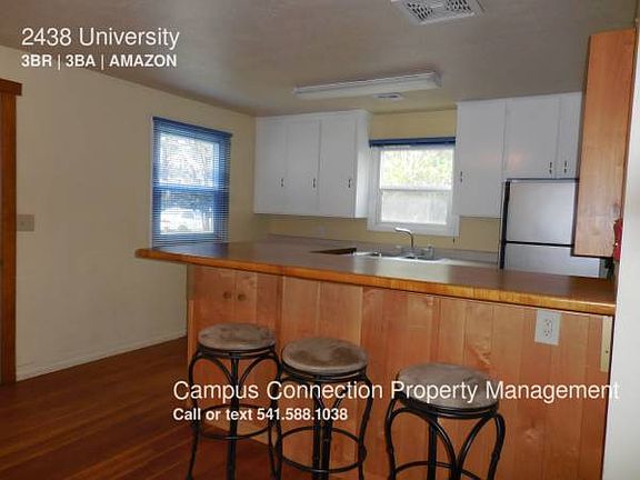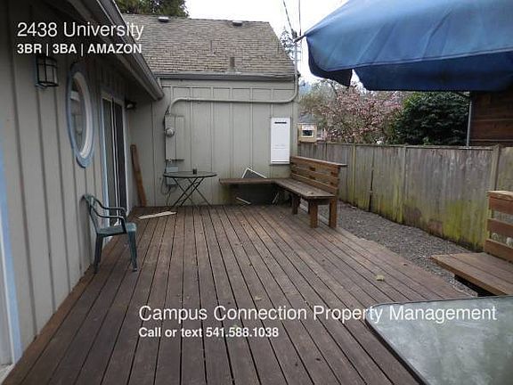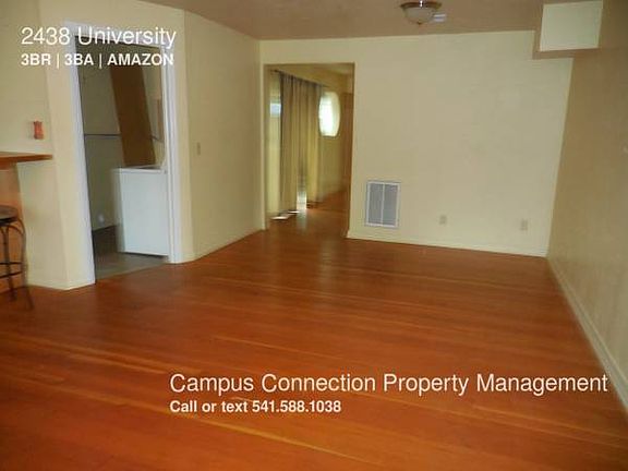 This roomy 3 bedroom, 3 bath house is in South Campus at 24th and University - right across from University Park, a few blocks from Sundance grocery, Allann Bros. Coffee, Sundial, Humble Bagel, and U of O Campus. Directly on bus line.