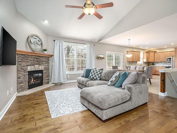 Over 3,000 square feet of living space. Step into this impeccably crafted ranch home, boasting a lower walkout level, ideally situated within the sought-after Paw Paw school district. Current owners utilize school of choice and go to Mattawan Schools (bus stop is close) As you enter, you're greeted by an inviting open floor plan flooded with natural light, setting the stage for a warm welcome. The great room serves as the heart of the home, featuring vaulted ceilings, a cozy corner fireplace, gleaming hardwood floors, and serene views of the picturesque backyard. Indulge your inner chef in the dream kitchen, adorned with an abundance of exquisite cabinets, tastefully castled, and crowned with molding. The expansive granite countertops, complemented by a custom tile backsplash, elevate both style and functionality. Stainless steel appliances, an eat-up bar, and a pantry add to the allure of this culinary haven. Adjacent to the kitchen, the dining area offers seamless access to the private deck, providing the perfect setting to savor meals amidst Michigan's idyllic summers. Retreat to the oversized primary suite, complete with a generous walk-in closet and a luxurious private bath showcasing double sinks and a beautifully tiled combo shower. Two additional bedrooms offer ample space and storage, while the family bath, laundry facilities, and mudroom contribute to the home's practical layout. Venture downstairs to discover an expansive family room, offering additional living space and direct access to the enchanting patio and pool area. A fourth bedroom, third full bath, and exceptional storage options complete this level, enhancing the home's functionality and versatility. Outside, your personal oasis awaits, featuring a heated pool, soothing hot tub, and inviting fire pit. A separate pool house and charming playhouse add to the allure of outdoor living, all nestled within the privacy of your own 1.4-acre retreat. Noteworthy features include a meticulously maintained pool installed in 2015, boasting top-of-the-line Hayward equipment, a heater, and an automatic suction cleaner. Indoor pool and hot tub remote control ensure added convenience and comfort, rounding out the allure of this exceptional property.