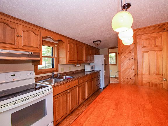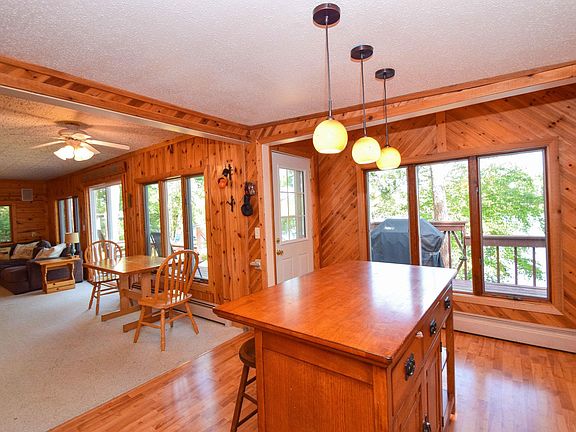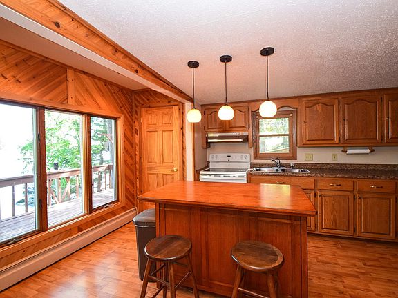 Charming Lake Belle Taine Cabin. Set just 40 feet from shore, making it easy to enjoy the picturesque views from the cabin or its lakeside deck. 1,130 sq. ft., 3 beds, 2 baths and a double garage (with bonus workshop/storage area). A nice open, lake oriented, living space and kitchen, bonus room with laundry hookups, and a rock fireplace. 100+ feet of sand shoreline, on one of the area’s most sought after lakes. Gentle slope from the cabin to the dock. Gradual but short, drop off to deeper water. Making a safe swimming area for littles, and a very manageable dock length. It’s easy to enjoy the waterfront when everything is right there. Plus, with Lake Belle Taine's 24 miles of shoreline and 1,496 acres, there is plenty of lake to enjoy.