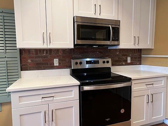Brick accentsBreakfast barQuartz countertopsOpen layoutUpdated modern finishesPull-out trash systemSoaring ceilings