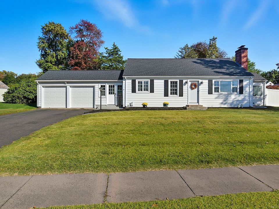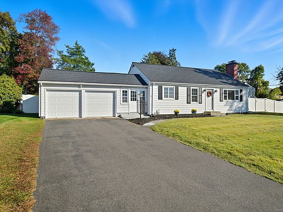 Welcome to this beautifully maintained and inviting 3 bedroom, 1.5 bath ranch nestled in a centrally located Enfield neighborhood. Step inside to discover a warm, open floor plan featuring a modern kitchen and dining area with stainless steel appliances and abundant cabinetry. The adjacent living room offers a cozy retreat with gleaming hardwood floors and a wood fireplace- perfect for those crisp New England evenings. Enjoy added versatility with an enclosed, all season porch, ideal for a home office, fitness area, or creative studio. The finished lower level for additional living space is complete with a dedicated theater room- perfect for movie nights or game days! Outside, you'll find a private, fenced-in backyard on a spacious .32 acre lot, ideal for gatherings, gardening, or simply relaxing in your own outdoor oasis. Conveniently located near I-91, this home combines comfort, style, and accessibility. With recent updates including roof, gutters, garage doors, windows and custom blinds throughout, this turn-key property is ready for you to move right in and make it your own! HIGHEST and BEST offer by Monday 10/20 at 5pm! Room dimensions as per public records, furniture can be discussed upon accepted offer if interested, excluding beds.