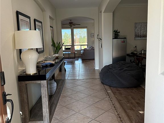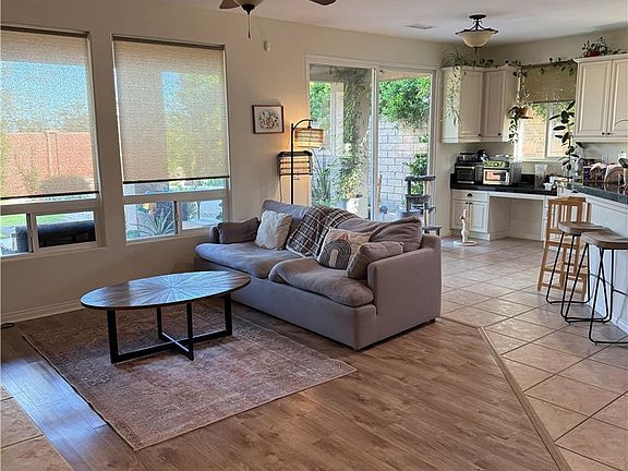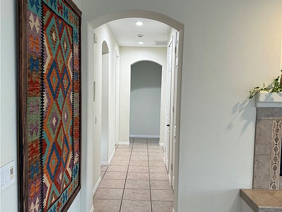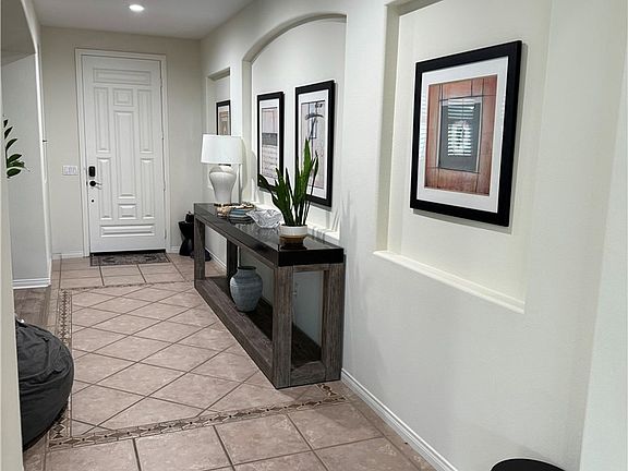Kitchen Island with veggie sink, double ovens and breakfast nook. Excellent separation between all bedrooms, no shared walls. Large inside laundry room with utility sink. Many custom upgrades throughout home including crown molding, custom tile and flooring, custom media center, art niches, tray ceiling, recessed lighting, premium ceiling fans, plantation shutters, custom blinds, drapery and so much more. Large master bedroom with huge walk in closet . Master bath suite having soaking tub and enclosed shower. Master bed has door to the patio to Stay cool with fresh air. Dual Zoned HVAC and a double insulated garage door. Backyard features a heated 10 person waterfall spa with jets. Well maintained backyard with home grown vegetables and fruits. Community features pool and spa, children's park, 2 dog parks as well as walking and jogging trails.