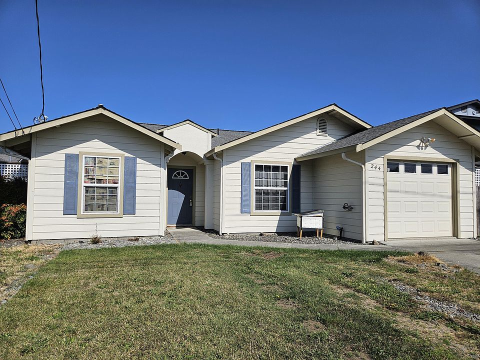 and restaurants. It's just a quick drive to highway 101. The primary bedroom is very large with the similar dimension of the primary bath and closet. There's a sliding glass door leading to the back yard. The yard is very easy to maintain. The left side of the house has been arranged for all of your gardening supplies. Have your favorite realtor show your future home to you.