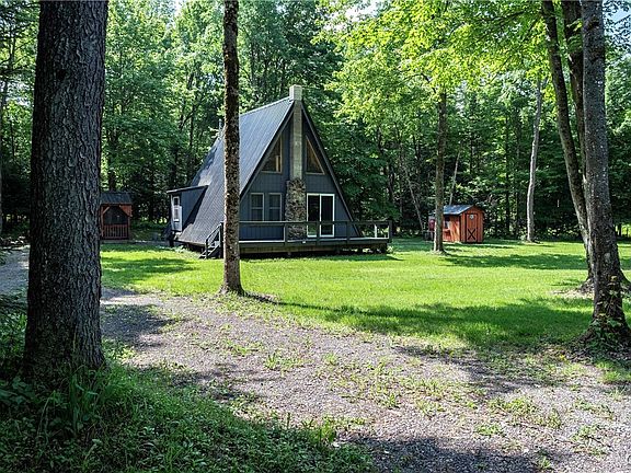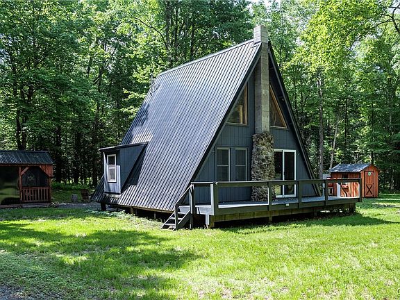 Adorable A-Frame cabin in the woods. Hinckley Reservoir access within walking distance and less than 5 minutes to a public boat launch. Pride of ownership shows throughout the property. It's knotty pine interior and loft add to the charm. This property originally had an outhouse with no running water but the owner added both a well and septic two years ago. The roof is new too with a transferable warranty. Come relax and enjoy nature in an amish built screened in room. Store all your lake toys in the amish built shed. Both were purchased new by this owner. Enjoy the trails throughout the Adirondack out your door and be able to store your snowmobiles or side-by-side in the metal storage cube. Cool nights can be spent outside sitting by the cozy fire pit or inside by the toasty warm wood stove. Currently the cabin is for 3 season use but with a few modifications this could easily be a winter retreat too. Don't wait to see this hidden gem.