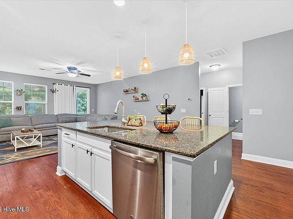 Welcome to your dream home in the highly sought-after Calabash Lakes community. Begin your tour on the inviting front porch and notice the wood flooring throughout the downstairs living areas. From the dining room, come through the foyer or the butler's pantry area into the large open kitchen. The huge bar leads you directly into the expansive living room. This is just a shade smaller than the enormous family room upstairs! The screened-in patio is open to the living room and the private yard. The large primary bedroom features a walk-in shower and additional storage space.