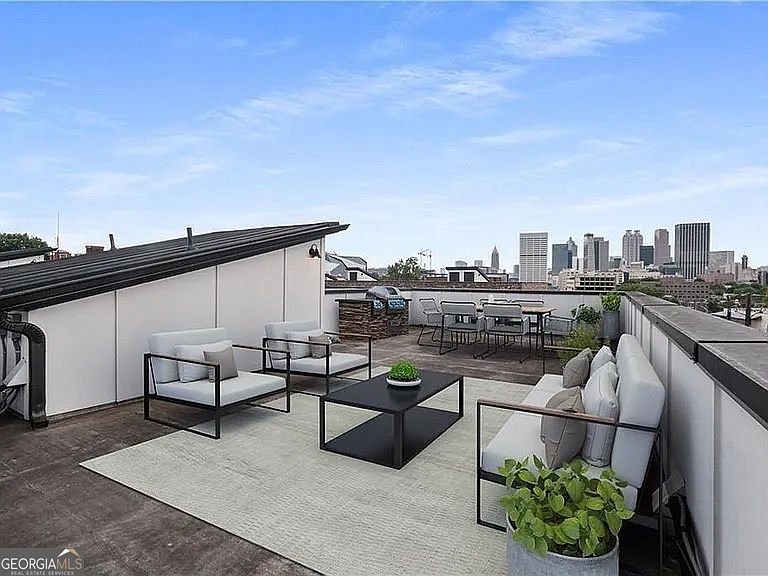 Discover the perfect fusion of style, location, and lifestyle in this industrial-chic end-unit townhome in the coveted Castleberry Station community. Tucked away on a quiet street yet just steps from the energy of South Downtown Atlanta (SoDo), this home places you at the heart of it all-walk to Mercedes-Benz Stadium, State Farm Arena, the Westside Beltline, and the soon-to-open Centennial Yards, Atlanta's most exciting new destination for dining, shopping, and entertainment. Inside, a light-filled, three-story layout showcases soaring ceilings, sleek modern finishes, and three spacious bedrooms, each with a private en suite. Designed for comfort, privacy, and style. The open-concept main level is ideal for entertaining, featuring a chef's kitchen, ample living space, and a seamless flow. The crown jewel? An expansive private rooftop terrace with panoramic skyline views, complete with a direct gas line for effortless grilling and smart lighting throughout, creating the ultimate space for entertaining or relaxing under the city lights, overlooking your city view. Meticulously maintained and move-in ready, this home combines convenience and sophistication in one of Atlanta's fastest-growing neighborhoods. This opportunity won't last-schedule your showing today and secure this exceptional property before it's gone!