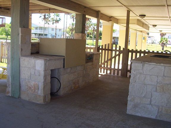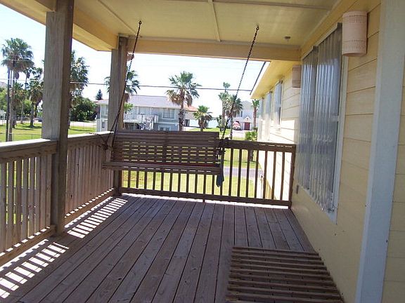 Have you dreamed of being on Copano Bay? An outdoor kitchen? This meticulously maintained home features unique knotty pine doors, cabinets, and crown molding. Living room features a tray ceiling, entertainment center and window shutters. All furniture and appliances convey including the dining table that has two leaves for additional guests. Kitchen features ample cabinets. peninsula with more seating and glass top range with double oven. Three bedrooms, two baths upstairs and one bedroom with bath downstairs. Tile flooring throughout has hand-scraped wood look. Large outdoor kitchen,covered patio, fenced yard and storage shed are special exterior features. Covered deck spans two sides of the home. A stone path leads to the concrete dock. Ample parking for your guests. New Lexan hurricane shutters. New AC unit Oct. 2016.