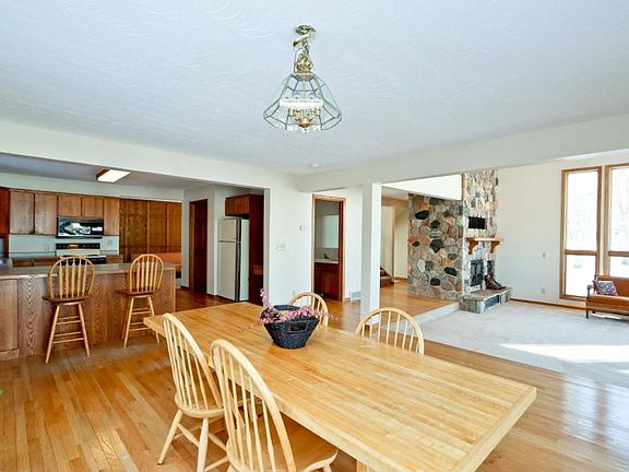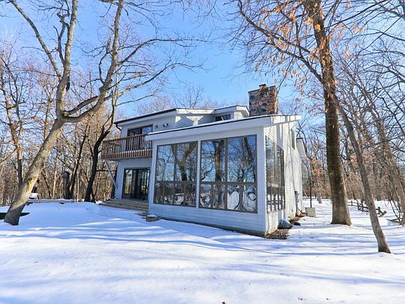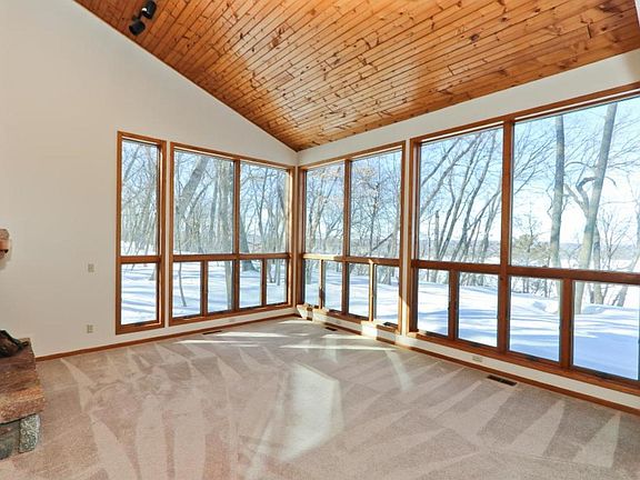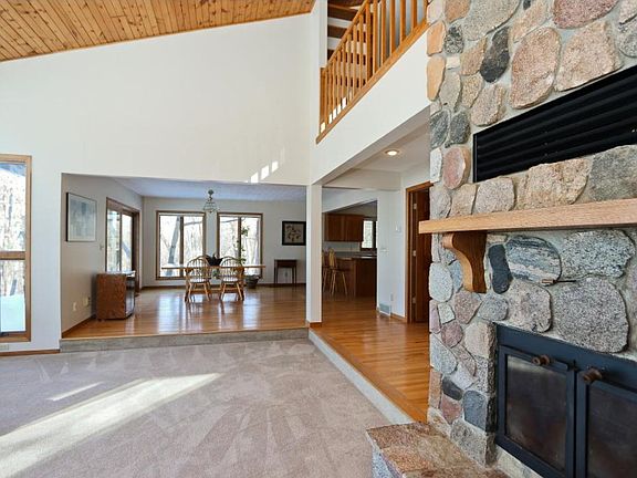 Wonderful home with shared St Croix beach access and views in a wooded setting. Open floor plan with expansive windows, newer decks and roof. Great bones will allow for personalized updates, although home is very livable as is.