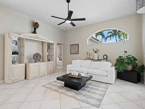 Welcome to this beautifully maintained Olivia model featuring 4 bedrooms, 3 baths, plus a bonus den/office, perfectly situated on a desirable corner lot in the Estates of Royal Palm Beach. This split floor plan offers a welcoming entryway, open living spaces, and a master suite with serene pool views and lanai access. Elegant details include tray ceilings, Corian counters, stainless appliances, and a circular driveway--plus your own fruit-bearing mango tree. Recent upgrades: roof (2019), exterior paint (2020), appliances (2020), A/C (2022). Enjoy a 24-hour manned gated community, minutes from Wellington, shopping, downtown West Palm, major highways, and PBI Airport. Move-in ready, combining comfort, style, and convenience--perfect for creating lasting family memories.
